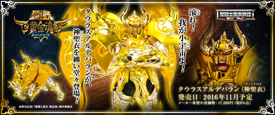 Aldébaran apparaît portant l’armure divine du Taureau en tant que huitième personnage de la série Gold Saint Sacred Cloth.